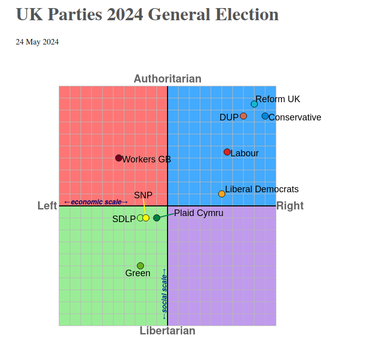 So here we are on our political and economic spectrum, where tiny movements between the very clustered Reform, Conservative, Labour and Liberal Democrat positions fill our newspapers and social media comment. The Greens and, presumably if it ever gets off the ground, Your Party are seen as so far away from the cluster that they often get left out of our political discourse. It is an incredibly narrow perspective and we wonder why we are stuck on so many major societal problems.