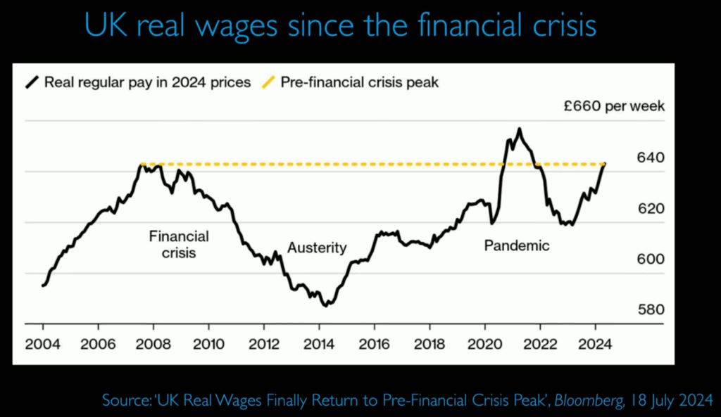 So, even if the overall number of jobs may not be reduced, the case being made is that the average skill level required to carry them out will be. As Susskind said, the Luddites may have been wrong about the spinning jenny replacing jobs, but it did replace and transform tasks and its impact on workers was to reduce their pay, quality of work, status as craftsmen and economic power. This looks like the threat being made by employers once again, with real UK wages already still only at the level they were at in 2008: