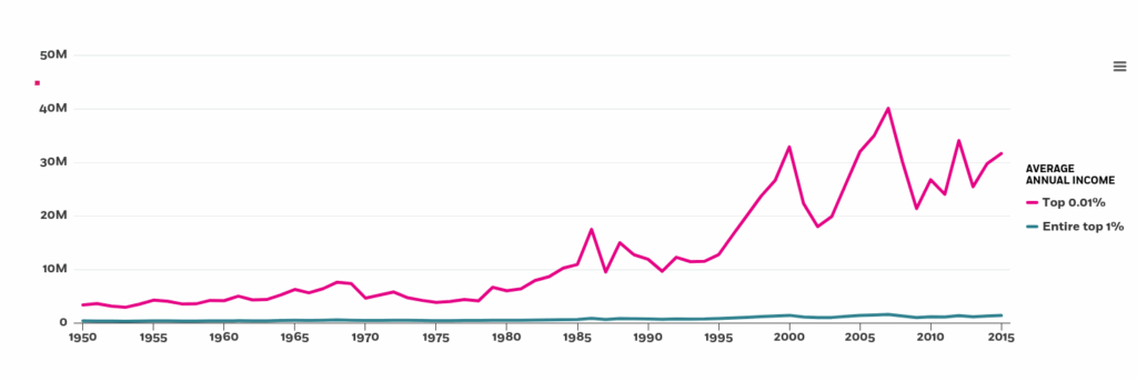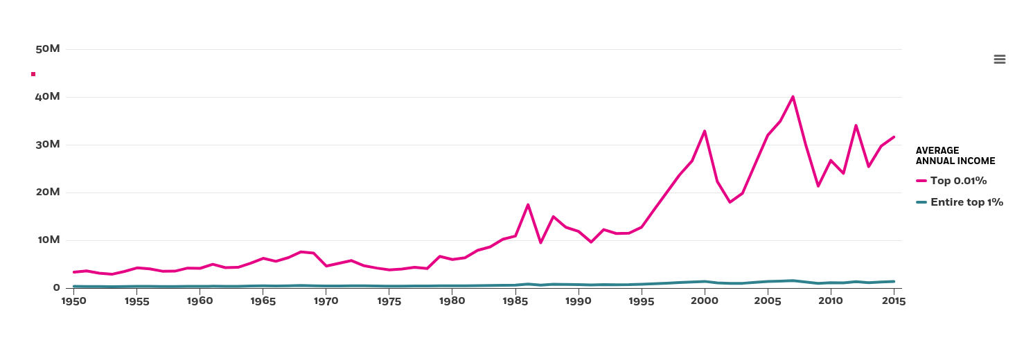 The AI Rush has a similar distribution problem, but it is also the first industrial revolution since the global finance industry decoupled from the global real economy. So the wealth share of the Top 10% isn’t going back up fast enough? No problem. Just redistribute the money at the top even further up: