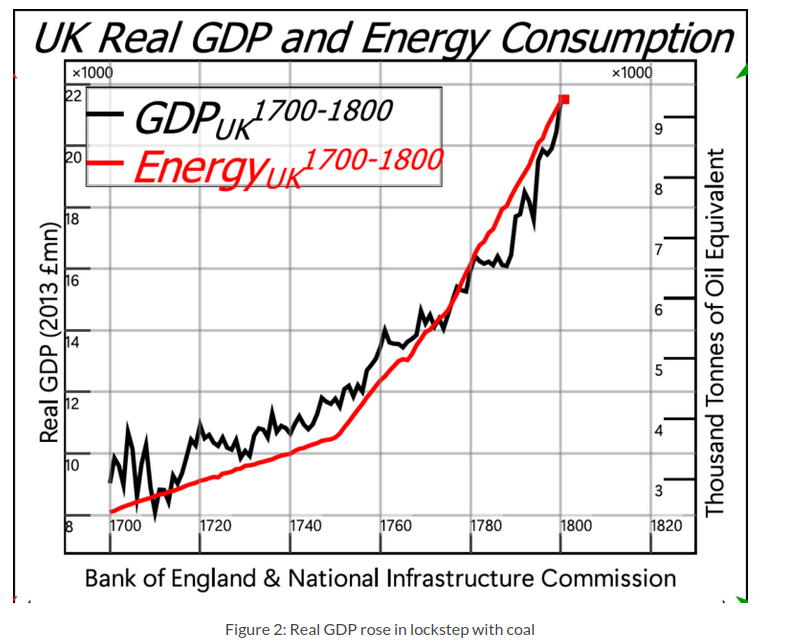 The statistics strongly support Jevons’ perspective that energy—and specifically, energy from coal—caused rising living standards in the UK (see Figure 2). Coal, and not a hypothesised change in culture, propelled the rise in living standards that Susskind attributes to intangible ideas.