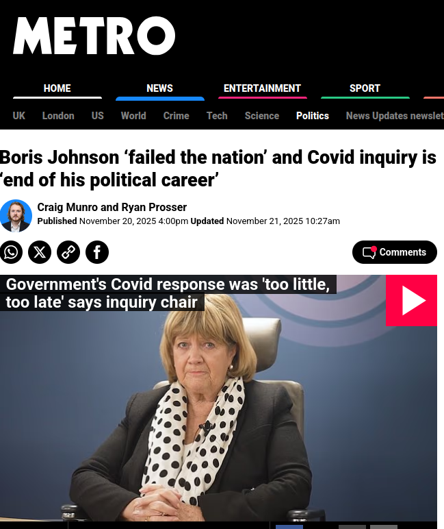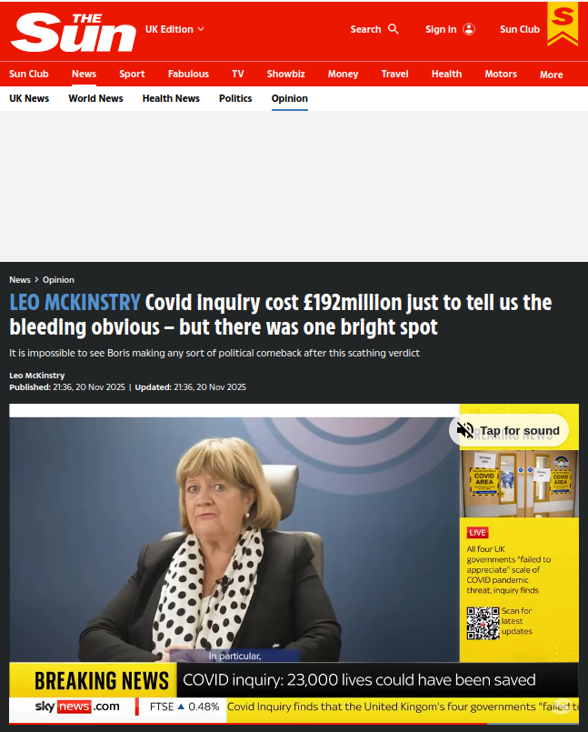 And crucially who to blame for it. Its recommendations were far less specific and actionable in my view than those from the first report. And yet it got all the headlines, with glowering images of Baroness Hallett and pictures of Boris Johnson with head bowed.