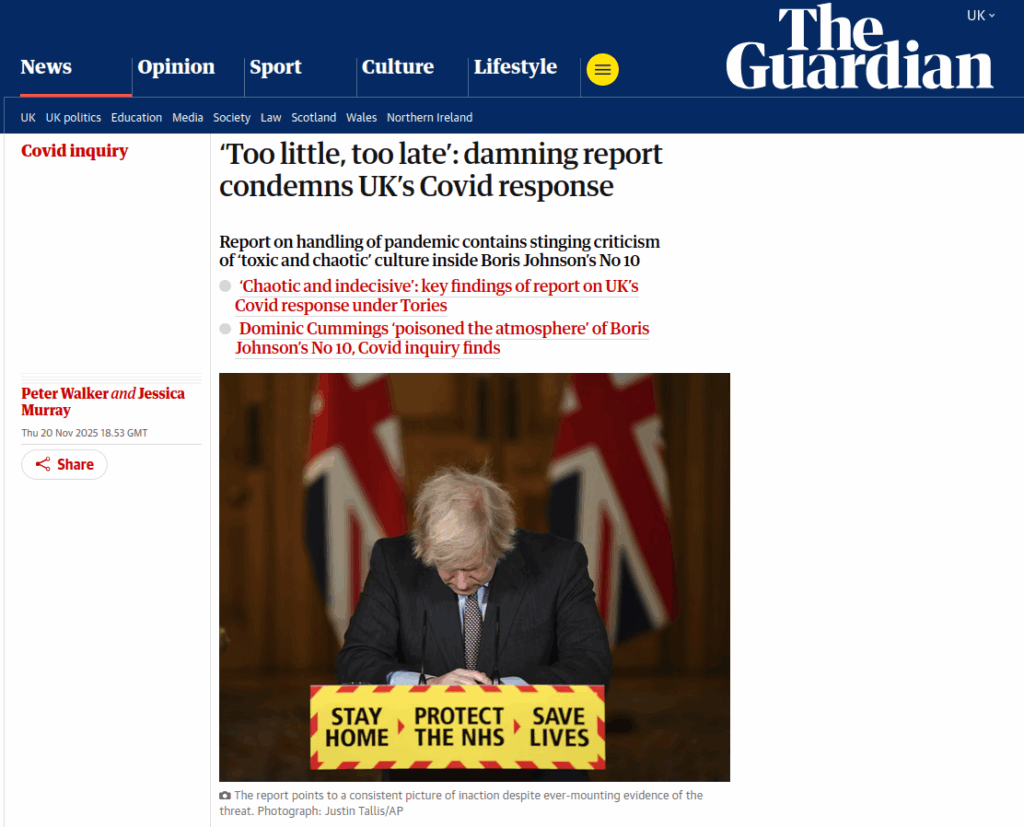 On 20 November, the UK Covid-19 Inquiry published its second report and recommendations following its investigation into ‘Core decision-making and political governance’. The following day these were the headlines: