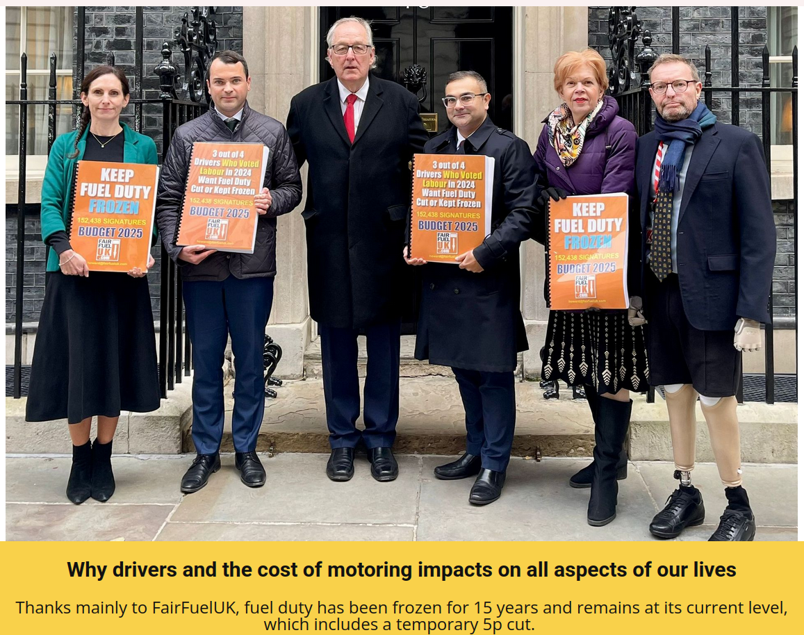 Most of the content from this article recommending eternal vigilance despite the cheapest prices for 5 years and the claims that “petrol is still 6p too high at the pumps” comes from Howard Cox, founder of FairFuelUK. Whose website includes this picture with a not-too-presumptious-claim-at-all below it: